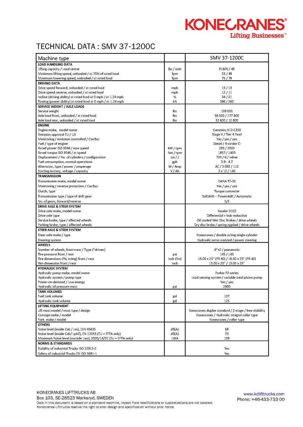· Cummins X12-C350 (283 kW/ 1700 rpm/ 1857 Nm/ 11,8 L / Tier 4f) |